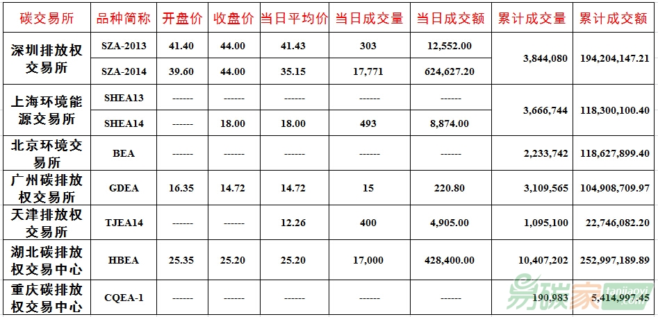 ccer成交8,038噸(其中大宗交易成交25,000噸)。截止當(dāng)日,深圳碳