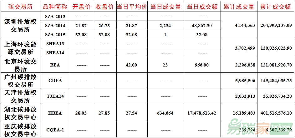 ccer今日成交4,000噸。截止當(dāng)日,深圳碳
