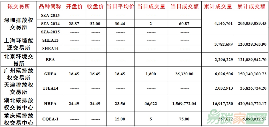 市場配額總成交量4,146,761噸,總成交額205,059,089.45元;CCER總成交量1,415,787噸。