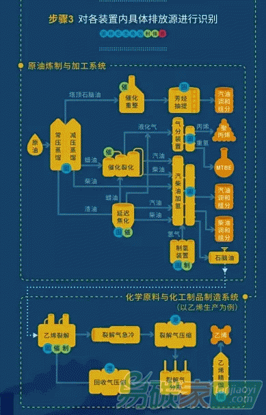 整體石化行業(yè)產(chǎn)業(yè)鏈較長,子行業(yè)眾多,從行業(yè)源頭開始,分為油氣開采業(yè)、油氣煉制加工業(yè)、化學原料與化學制品業(yè),以及化工制品業(yè)。在這條復雜的產(chǎn)業(yè)鏈上,石化產(chǎn)品有上千萬種之多,而且生產(chǎn)同一產(chǎn)品的原料多樣,導致生產(chǎn)工藝流程及裝置設(shè)施均有不同,對應(yīng)的溫室氣體排放源也不同,如要窮盡其例,工作量非常巨大。限于此,為便于分析,世界資源研究所提出了一套基于企業(yè)生產(chǎn)系統(tǒng)的層級化排放源識別方法。選取以原油和天然氣為原料加工制取的、溫室氣體排放較大的石化產(chǎn)品生產(chǎn)企業(yè),梳理各產(chǎn)品的典型生產(chǎn)工藝流程,并對企業(yè)溫室氣體排放源進行識別,從而為石化行業(yè)溫室氣體排放報告及核查工作提供關(guān)鍵技術(shù)支持。此套方法不僅適用于石化行業(yè),對于其他類型工業(yè)企業(yè)也有一定的借鑒作用。