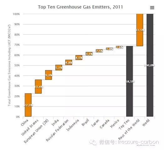 2011年:前十大排放國(guó)仍占全球二氧化碳排放總量的78%