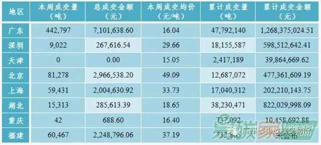 碳市場僅有四個交易日,碳市場活躍度明顯下降,共成交配額60.79萬噸,較前一周下跌66.50%,總成交金額為1262.67萬元,較前一周下跌46.58%。廣東碳市場上周成交配額44.28萬噸,成交均價為16.04元/噸,較前一周上漲16.06%;