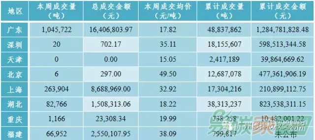 碳市場活躍度大幅上升,共成交配額139.36萬噸,較前一周上漲129.25%,總成交金額為2662.84萬元,較前一周上漲110.89%。廣東碳市場上周成交配額104.57萬噸(含協(xié)議轉(zhuǎn)讓40萬噸),成交均價為17.82 元/噸,較前一周上漲11.10%。