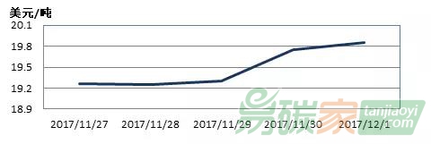 2017年11月27日至2017年12月3日新西蘭碳單位(New Zealand Unit, NZU)的現(xiàn)貨價(jià)格在19.25-19.85美元/噸之間。