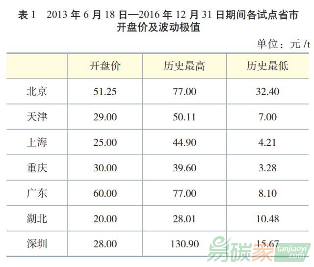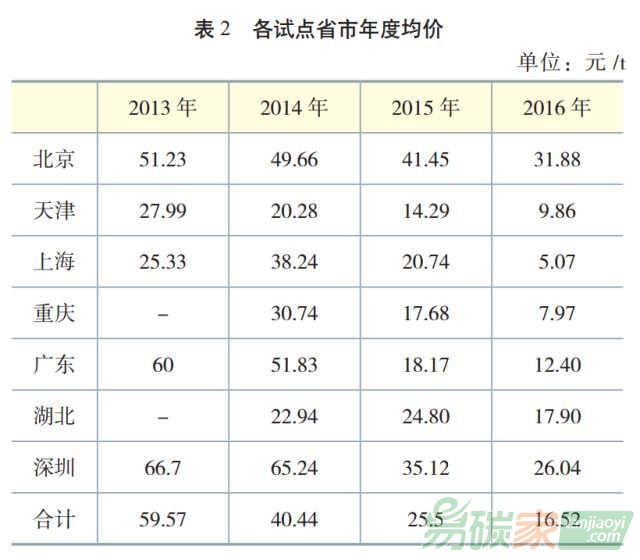 北京);2016年,碳價格從5元/t(上海)到32元/t(北京)不等。