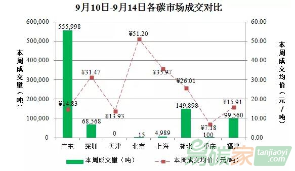 廣東碳市場上周成交配額55.60萬噸,成交均價(jià)為14.83元/噸,較前一周上漲13.90%;