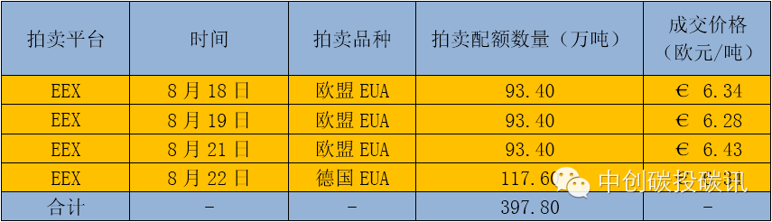 3,歐盟碳交易體系(EU ETS)的第三階段配額拍賣共有兩個拍賣平臺: ICE是英國EUA的拍賣平臺,EEX是德國EUA、波蘭EUA和歐盟EUA(即除以上三國之外的另外28個EU ETS成員國的EUA)的拍賣平臺。