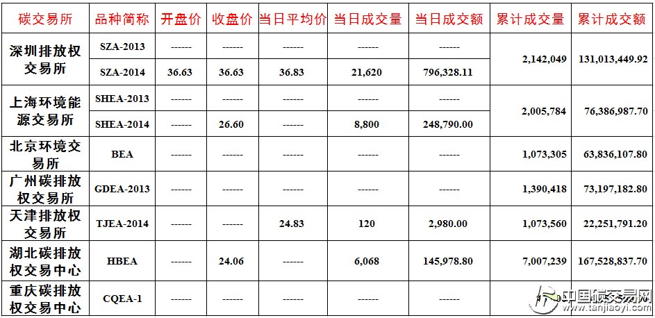 市場2014配額成交量21,620噸,成交額796,328.11元,收盤價36.63元,收盤價漲跌幅-10.00%。截止當日,深圳