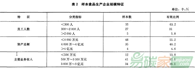 2.樣本食品生產(chǎn)企業(yè)規(guī)模特征