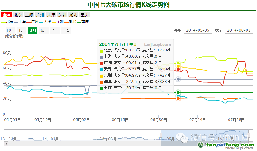 碳K線——碳交易市場(chǎng)價(jià)格行情走勢(shì)圖