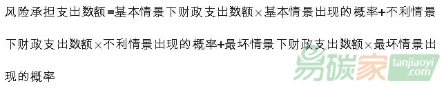 情景分析法。在各類風(fēng)險(xiǎn)支出數(shù)額可以進(jìn)行測(cè)算、但出現(xiàn)概率難以確定的情況下,可針對(duì)影響風(fēng)險(xiǎn)的各類事件和變量進(jìn)行“基本”、“不利”及“最壞”等情景假設(shè),測(cè)算各類風(fēng)險(xiǎn)發(fā)生帶來(lái)的風(fēng)險(xiǎn)承擔(dān)支出。計(jì)算公式為: