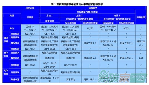 液體燃料的碳氧化率可取缺省值0.98;氣體燃料的碳氧化率可取缺省值0.99;固體燃料可參考附錄二表2.1按品種取缺省值。