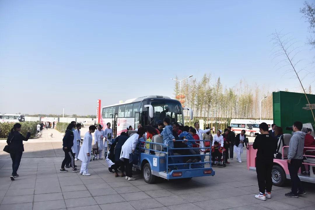 11點(diǎn)45分,一行人抵達(dá)西安國際醫(yī)學(xué)中心,小患者們在醫(yī)護(hù)人員的悉心陪同下進(jìn)入醫(yī)院。西安國際醫(yī)學(xué)中心康復(fù)醫(yī)院院長賀西京等領(lǐng)導(dǎo)至院外迎接,五輛擺渡車早已停在了醫(yī)院門口,已經(jīng)就位的醫(yī)生、護(hù)士、康復(fù)治療師親切地幫助患者小朋友上下車,給予他們切實(shí)的幫助與真心的關(guān)懷。