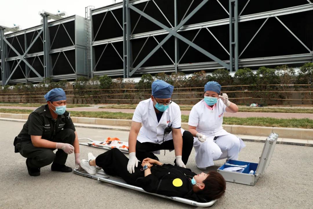 隨后院長(zhǎng)尹強(qiáng)通過(guò)對(duì)講機(jī)發(fā)出演練開(kāi)始指令。在觀摩組的注視下,一支由22輛急救車(chē)及20組醫(yī)、護(hù)、工人員組成的救援隊(duì)立刻趕赴模擬的重大交通事故現(xiàn)場(chǎng)進(jìn)行應(yīng)急救援。