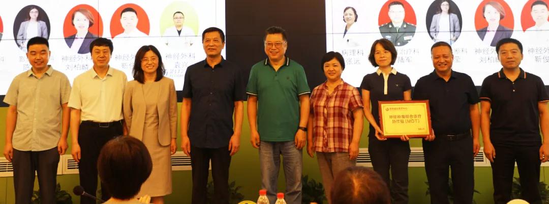 在與會(huì)人員見證下,高國棟教授,石梅教授,賀世明教授同甘肅省腫瘤醫(yī)院,寧夏醫(yī)科大學(xué)總院,西京醫(yī)院,西安交大一附院等參會(huì)專家共同為西安國際醫(yī)學(xué)中心醫(yī)院神經(jīng)腫瘤綜合診療協(xié)作組(MDT)剪彩揭牌。