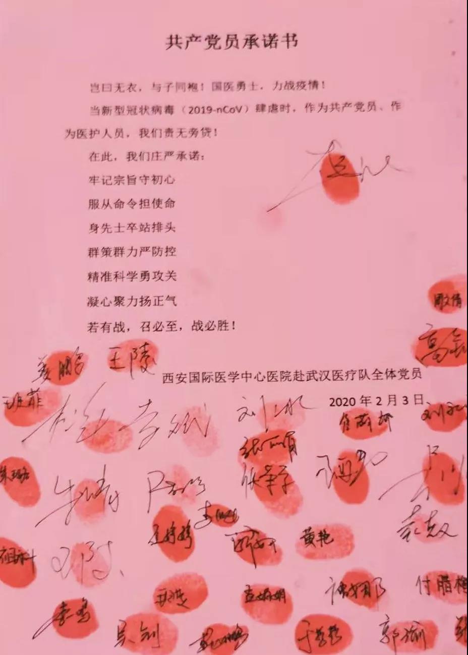 2月3日,西安國際醫(yī)學(xué)中心醫(yī)院赴武漢醫(yī)療隊(duì)抗擊新型冠狀病毒感染的肺炎承諾踐諾書一經(jīng)發(fā)布,又有一批批醫(yī)護(hù)人員紛紛遞交請戰(zhàn)書、入黨申請書。