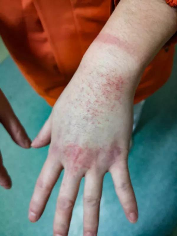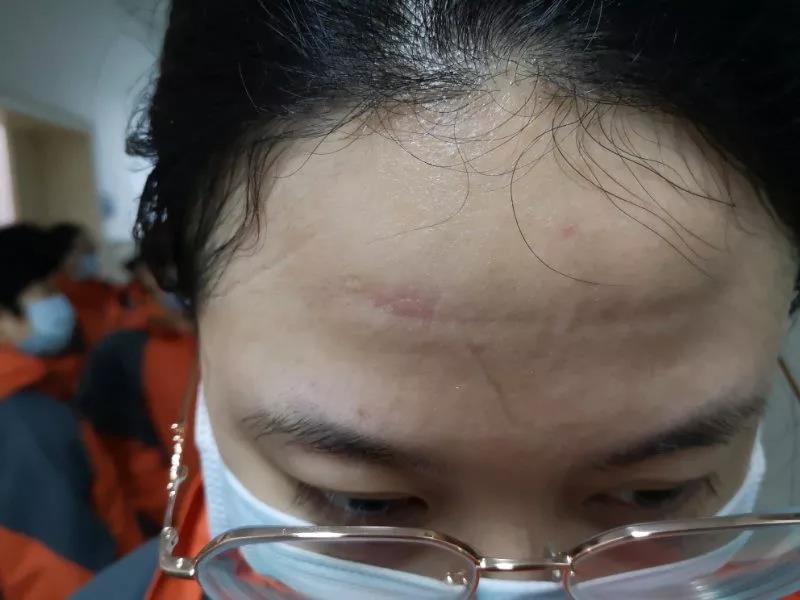 身著厚厚的防護(hù)服,每天工作4個多小時,摘下護(hù)目鏡,她的臉上布滿了勒痕,為患者輸液、霧化、處理大小便……