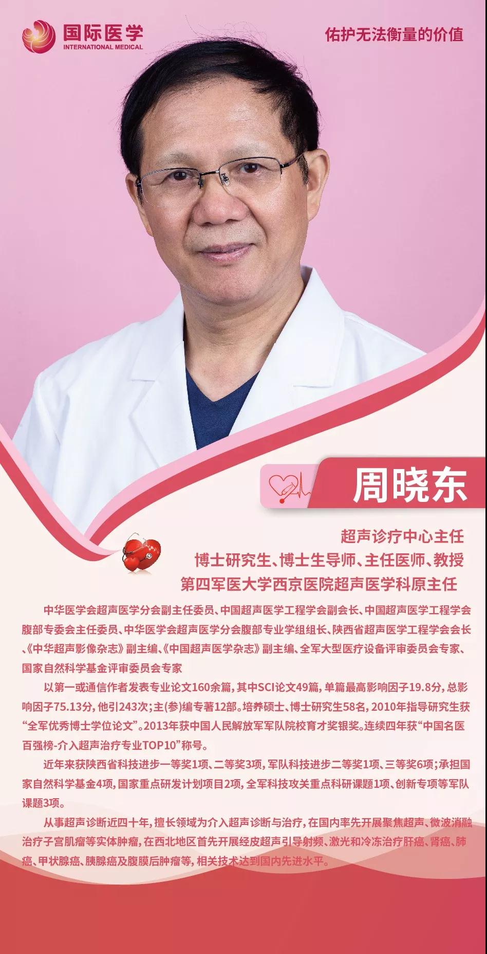 周曉東,中華醫(yī)學(xué)會(huì)超聲醫(yī)學(xué)分會(huì)副主任委員、中國超聲醫(yī)學(xué)工程學(xué)會(huì)副會(huì)長、陜西省超聲醫(yī)學(xué)工程學(xué)會(huì)會(huì)長、第四軍醫(yī)大學(xué)西京醫(yī)院超聲醫(yī)學(xué)科原主任、現(xiàn)任西安國際醫(yī)學(xué)中心醫(yī)院超聲診療中心主任。