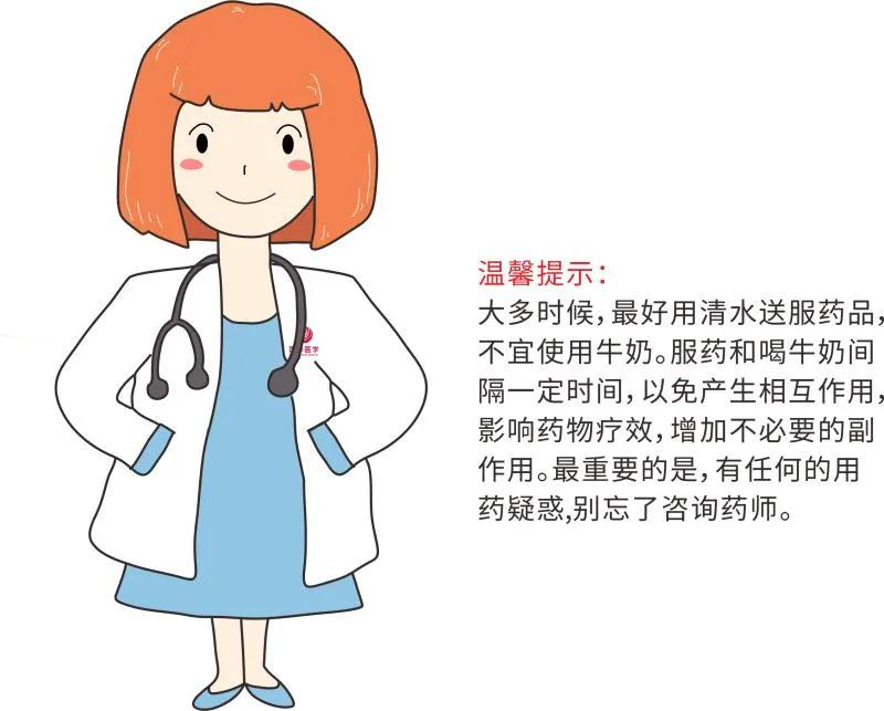 雖然牛奶跟大多數(shù)藥物“不合”,但和一些活菌藥卻是好朋友。治療胃腸疾病的微生態(tài)活菌制劑思連康、金雙歧、常樂康等可以用溫牛奶沖服,防止胃酸對活菌藥物的破壞。應注意牛奶溫度別超過40℃,以免“燙傷”活菌的活性。但這種情況比較特殊,除非是醫(yī)師或藥師交代與牛奶同服,或是藥品使用說明書推薦,否則也不推薦。