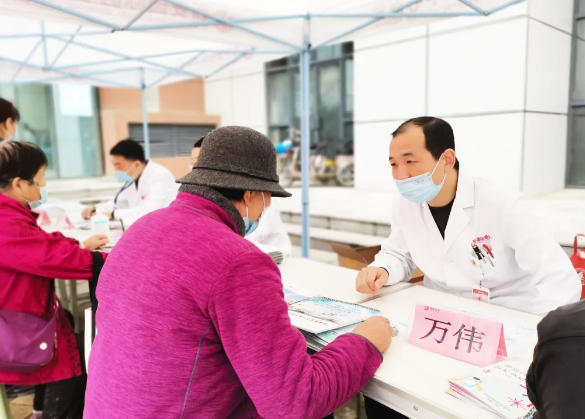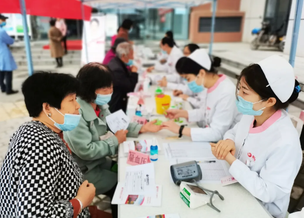 義診現(xiàn)場,各科醫(yī)護人員與前來咨詢的群眾充分溝通,免費為大家測血壓、血糖,查看檢查報告并耐心地講解和指導(dǎo),并給出治療建議。