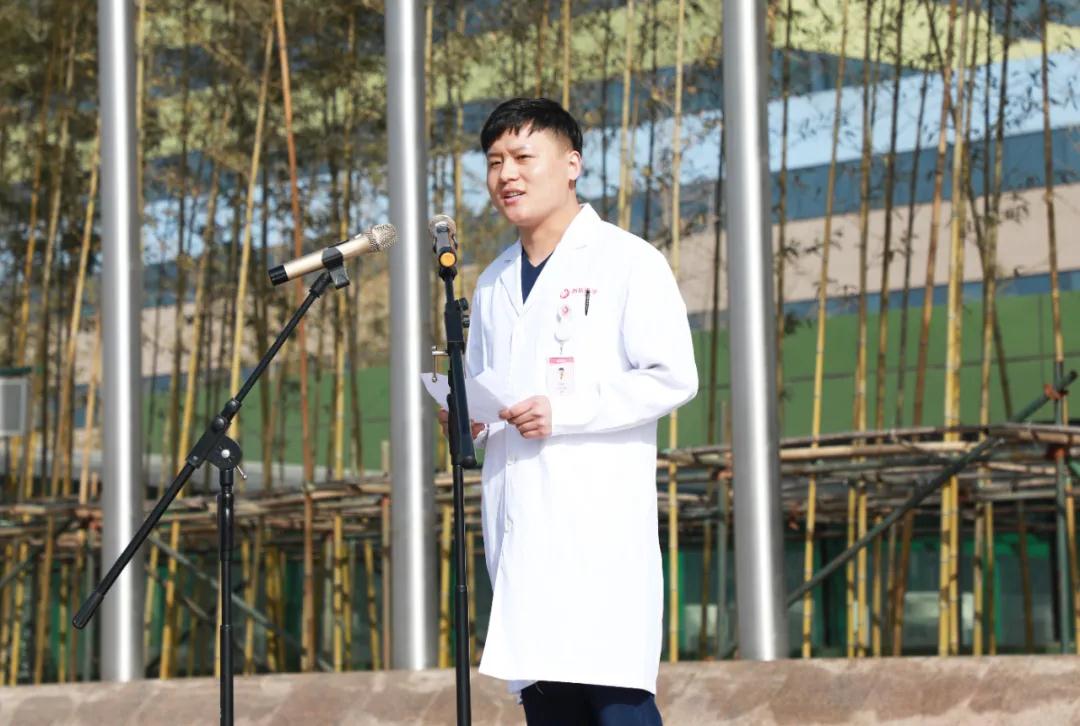 生殖內(nèi)分泌科醫(yī)師趙雄濤、醫(yī)學(xué)工程科助理工程師于帆代表新員工發(fā)言。他們表示,盡快轉(zhuǎn)變角色,將在全新的崗位上發(fā)揮才干、展現(xiàn)自我,也由教育的接受者轉(zhuǎn)變?yōu)榧寄艿恼莆照撸粩嗵岣咦约旱臉I(yè)務(wù)能力和內(nèi)在素養(yǎng),做一名內(nèi)外兼修、品德高尚、有高度愛心和責(zé)任心的醫(yī)療行業(yè)工作者。