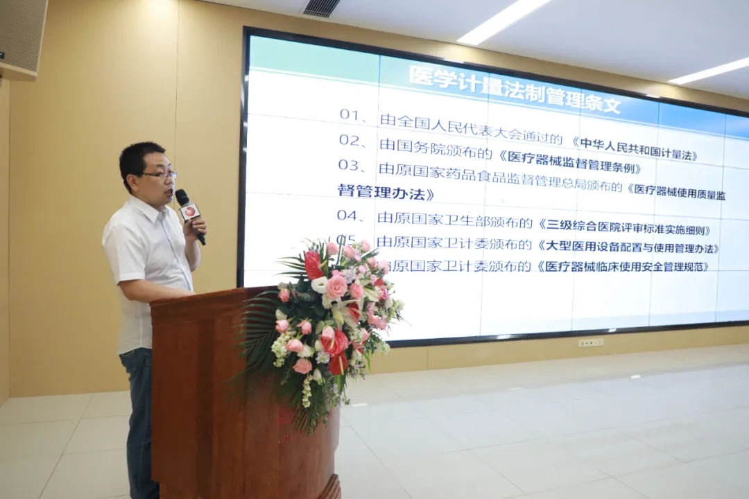 陜西省計量科學(xué)研究院高級工程師孫喜榮部長以“測量守護健康”為題,從醫(yī)學(xué)計量的意義、醫(yī)用計量器具檢定校準(zhǔn)的重要性以及如何做好醫(yī)用計量檢定校準(zhǔn)工作三個方面作了專題講座。