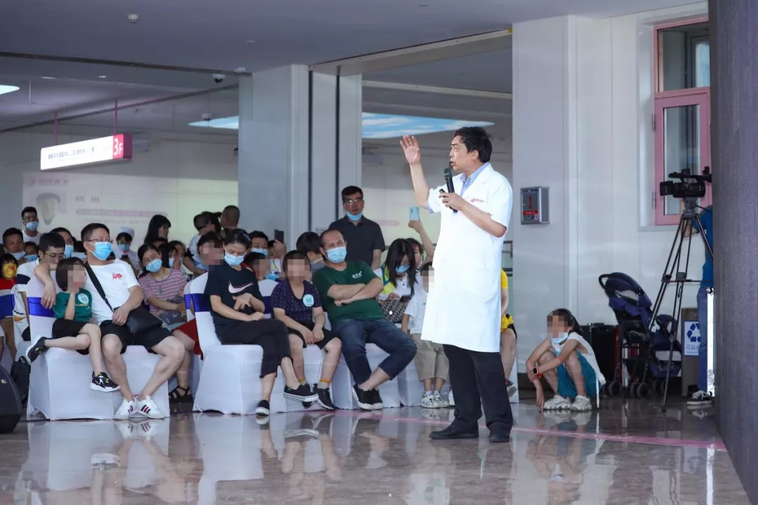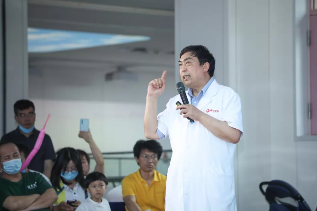 活動(dòng)開始,大屏幕首先呈現(xiàn)出來自全國各地“小耳寶寶”的端午祝福,孩子們的天真笑臉,美好愿望令人動(dòng)容。隨后西安國際醫(yī)學(xué)中心醫(yī)院整形醫(yī)院院長——郭樹忠教授,為數(shù)百個(gè)“小耳”家庭,詳細(xì)講解了“小耳畸形”疾病的相關(guān)知識(shí),客觀列舉了各種“耳再造”手術(shù)方法優(yōu)缺點(diǎn),力求讓患有“小耳”疾病的孩子及其家庭,對(duì)“疾病”及治療方式有更加全面系統(tǒng)的了解,也為到達(dá)最佳手術(shù)年齡,即將手術(shù)的“小耳”孩子們,在家庭護(hù)理環(huán)節(jié)、治療選擇環(huán)節(jié)等,提供清晰準(zhǔn)確的預(yù)判建議。