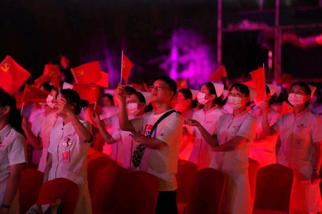 大賽在全體人員齊唱《我愛(ài)你 中國(guó)》的歌聲中完美落幕,慷慨激昂、雄壯有力的歌聲讓現(xiàn)場(chǎng)氣氛達(dá)到頂點(diǎn)。整場(chǎng)演出氣氛熱烈,激情昂揚(yáng),融思想性、教育性于一體,是一堂生動(dòng)的黨史學(xué)習(xí)教育現(xiàn)場(chǎng)課,具有強(qiáng)烈的引導(dǎo)力和感染力,既展示了中國(guó)共產(chǎn)黨百年光輝歷程,又展現(xiàn)了國(guó)醫(yī)人堅(jiān)定信念跟黨走、奮斗拼搏勇?tīng)?zhēng)先的精神面貌。