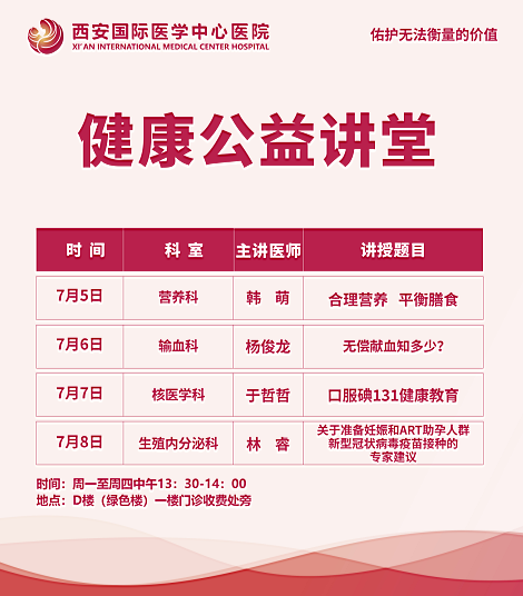 西安國際醫(yī)學中心醫(yī)院—青年醫(yī)師健康公益講堂預告