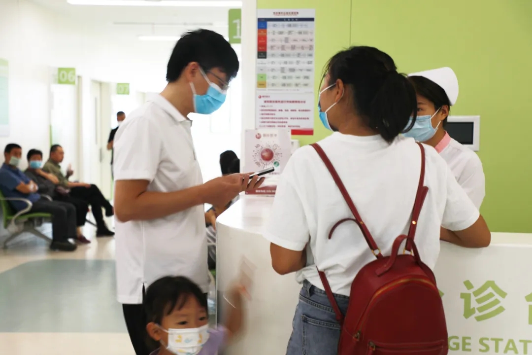 在醫(yī)院各個診區(qū)的咨詢處、分診臺前,醫(yī)護(hù)人員也為患者們講解活動流程,耐心地為年齡較大不會使用手機(jī)的患者,預(yù)約掛號。