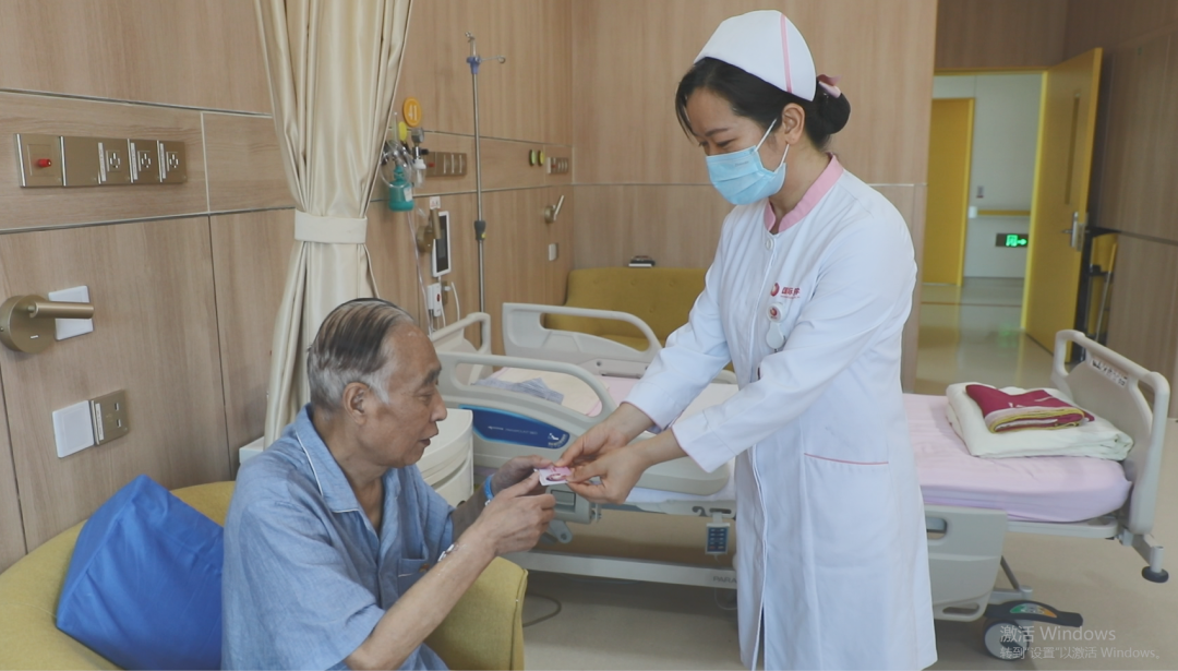 七月的一天,消化外科三病區(qū)的護(hù)士長(zhǎng)楊妮妮將健康卡送到69歲的甘爺爺手中。