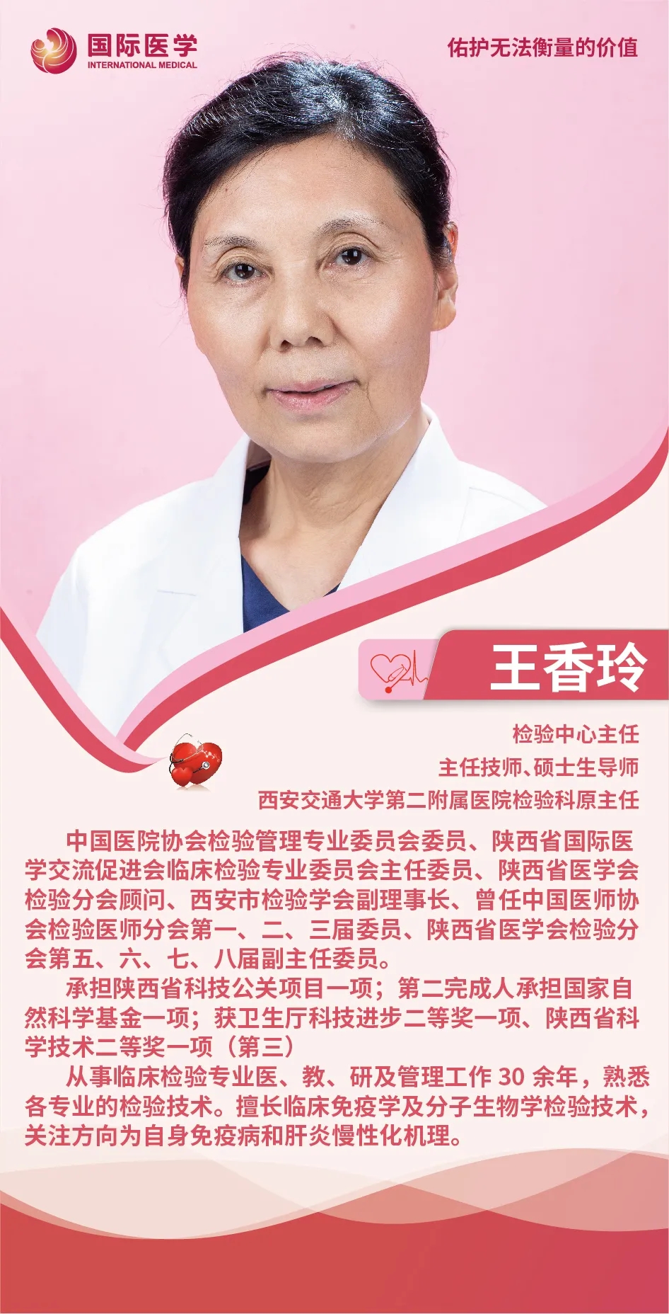 深耕于檢驗領(lǐng)域30余年的西安國際醫(yī)學中心醫(yī)院檢驗中心主任王香玲將顯微鏡下的花樣年華奉獻給她摯愛的醫(yī)學檢驗事業(yè)。