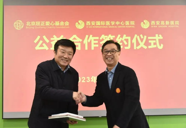 2月14日上午,西安國(guó)際醫(yī)學(xué)中心醫(yī)院、西安高新醫(yī)院與北京屈正愛(ài)心基金會(huì)公益合作簽約儀式在西安國(guó)際醫(yī)學(xué)中心醫(yī)院保障樓舉行,北京屈正愛(ài)心基金會(huì)創(chuàng)始人屈正、理事魏曉輝,國(guó)際醫(yī)學(xué)副總裁孫文國(guó),西安國(guó)際醫(yī)學(xué)中心醫(yī)院院長(zhǎng)尹強(qiáng),西安高新醫(yī)院總經(jīng)理范郁會(huì)、院長(zhǎng)宋瑛及醫(yī)院相關(guān)部室、專科醫(yī)院負(fù)責(zé)人等出席活動(dòng),西安國(guó)際醫(yī)學(xué)中心醫(yī)院副院長(zhǎng)付強(qiáng)主持儀式。