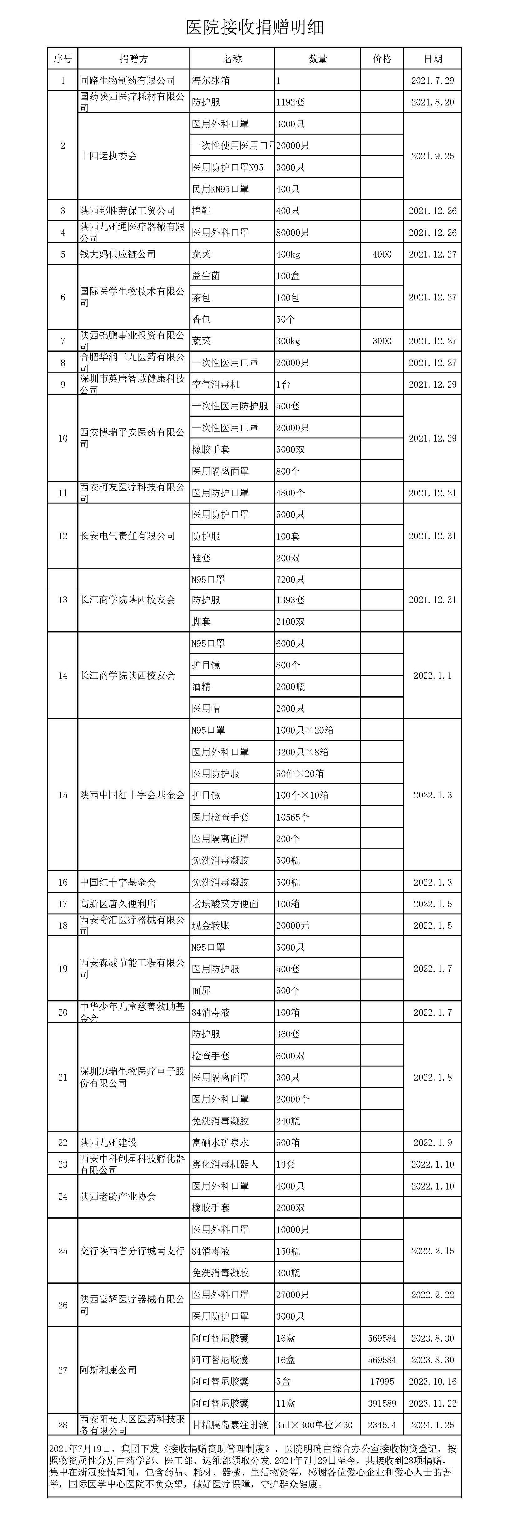 疫情期間接收物資主要有食品類、服飾類、清潔用品類、消毒用品等,物資主要有;方便面、礦泉水、84消毒液、慕斯軟墊、鞋子、拉拉褲、醫(yī)用垃圾袋、15L垃圾桶、等。捐贈(zèng)物資均是通過庫(kù)房管理員簽字接收直接入庫(kù)管理,領(lǐng)取方式:經(jīng)各部門領(lǐng)導(dǎo)同意后按要求發(fā)放,統(tǒng)一制定發(fā)放模版,部門(領(lǐng)用人)簽字,領(lǐng)用流程結(jié)束。庫(kù)房管理員將所有物資發(fā)放明細(xì)同步按類別歸檔保存。